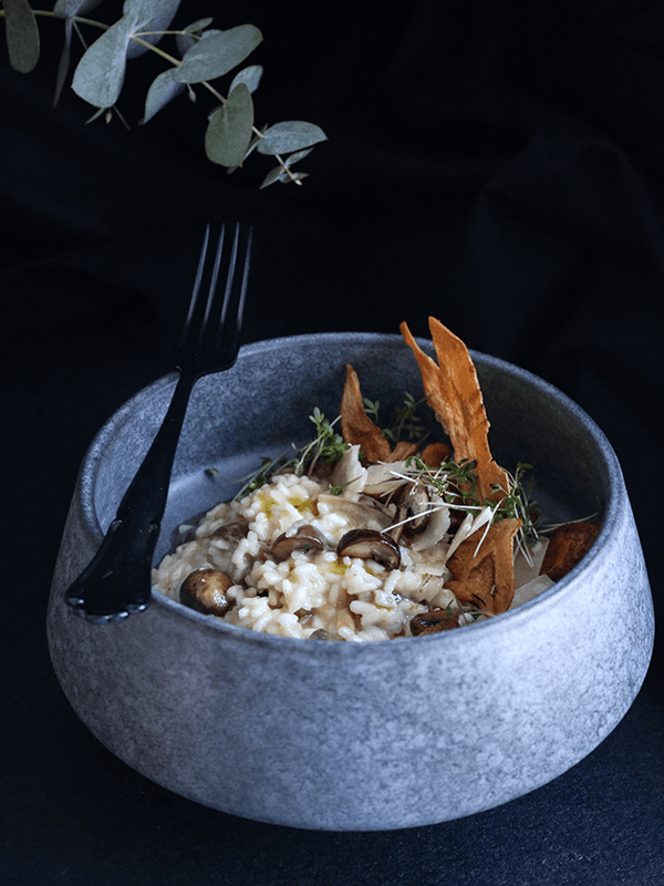- Skär palsternacka så tunt som möjligt gärna med mandolin. Låt torka på papper en stund och fritera sedan lite i taget i oljan som värmts till 180 grader i en tjockbottnad kastrull. Fritera i 1-2 min och låt chipsen sedan rinna av på papper. Salta och servera till risotton.