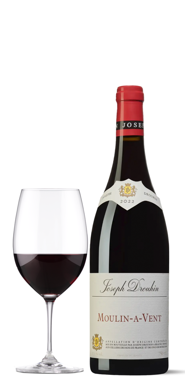 Moulin-À-Vent är en av de äldsta vingårdarna i Beaujolais och belägen högt upp på en kulle som omger en gammal väderkvarn som är över 300 år gammal. Namnet ”Moulin-À-Vent” betyder just väderkvarn. Vinet bjuder på intensiva och eleganta aromer, med vacker struktur och sammetslen textur. Bärig smak med inslag av blåbär, örter, hallon, körsbär och björnbär.